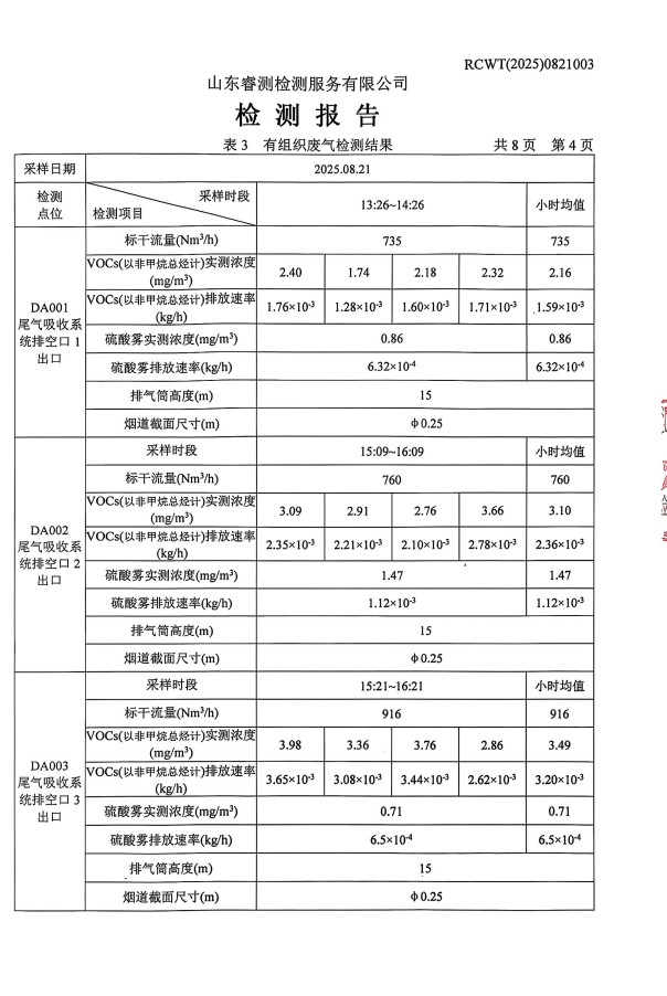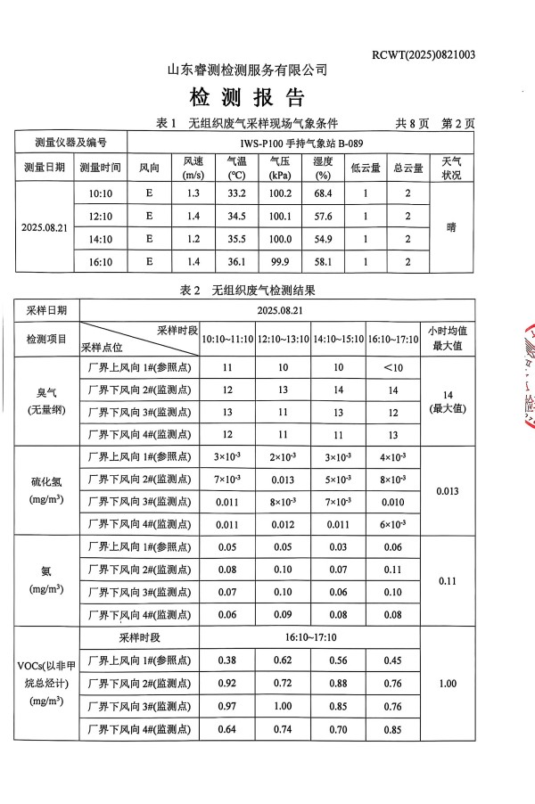 2025年8月廢氣、噪聲檢測報告