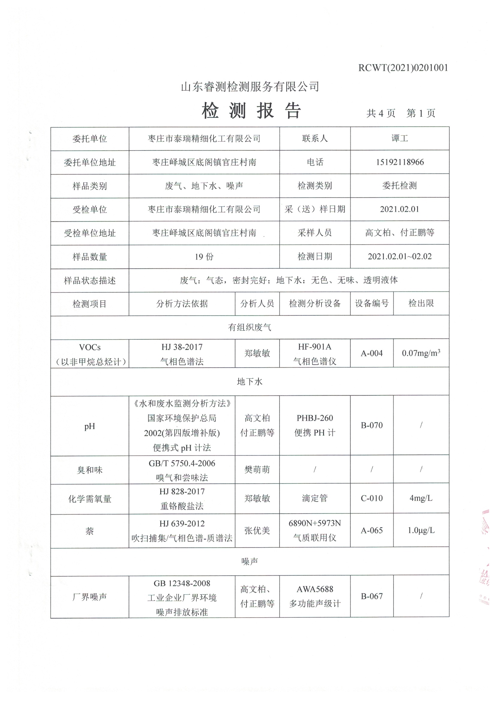 2021年2月份自行檢測(cè)報(bào)告