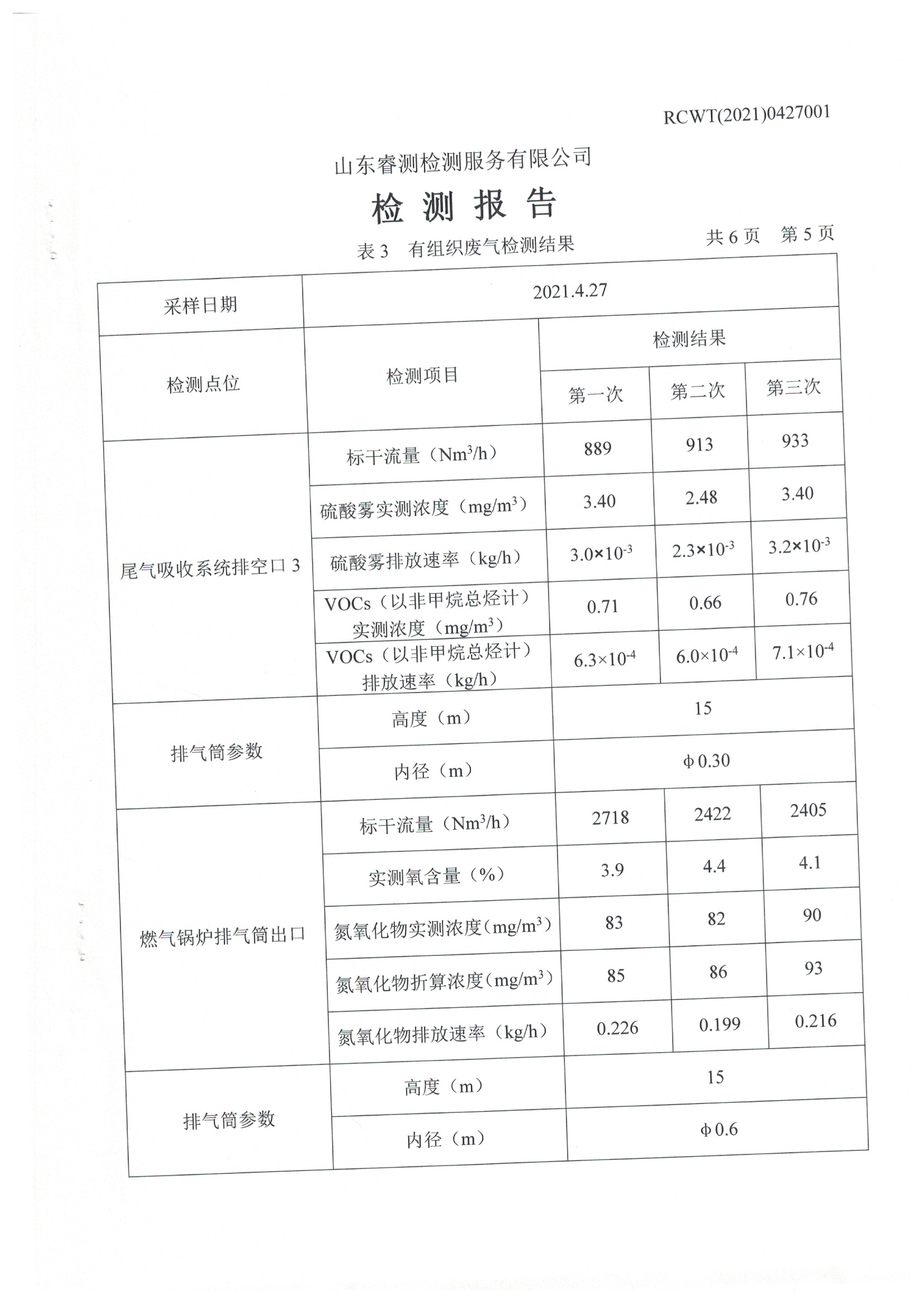 2021年4月份及季度自行檢測報告