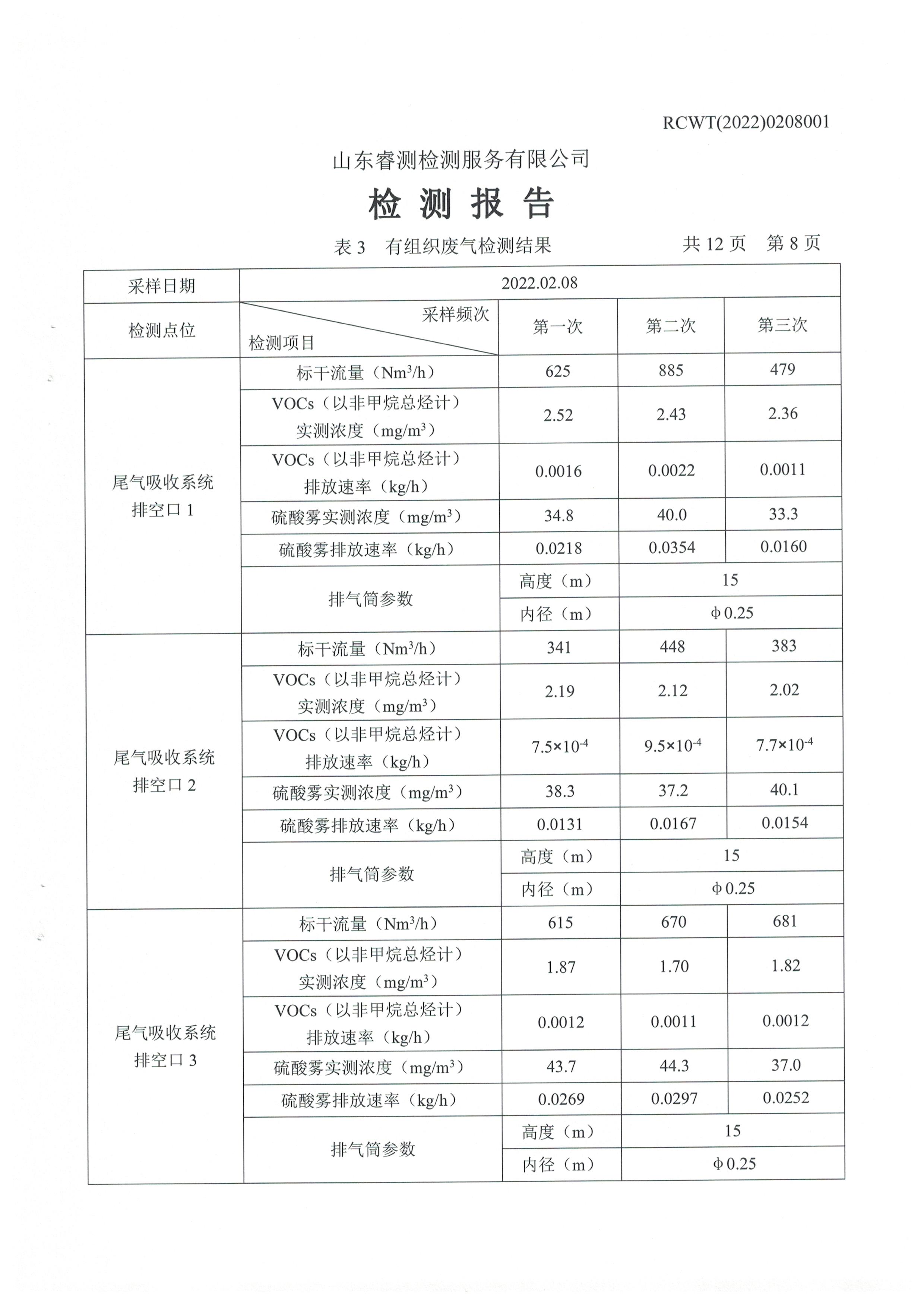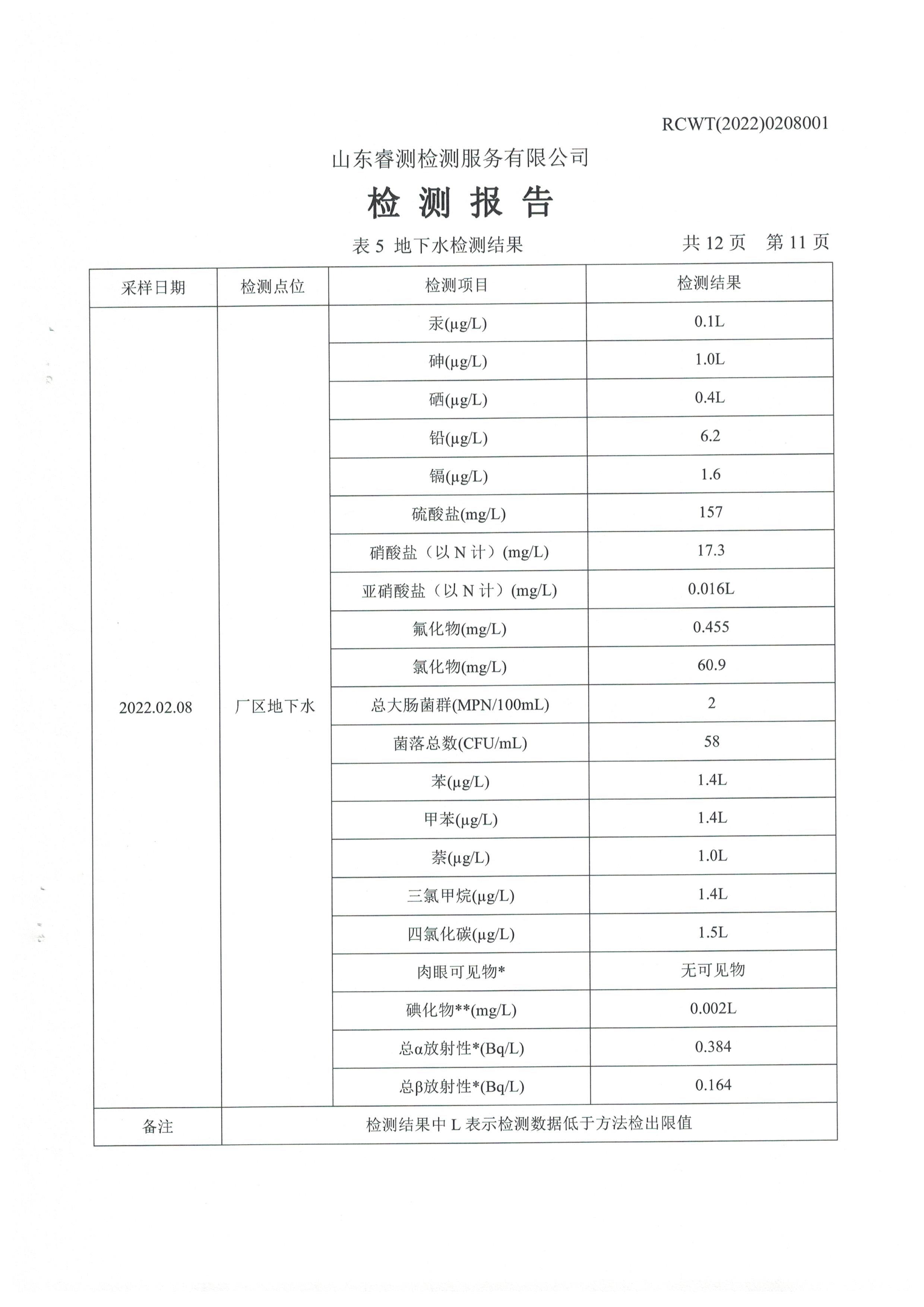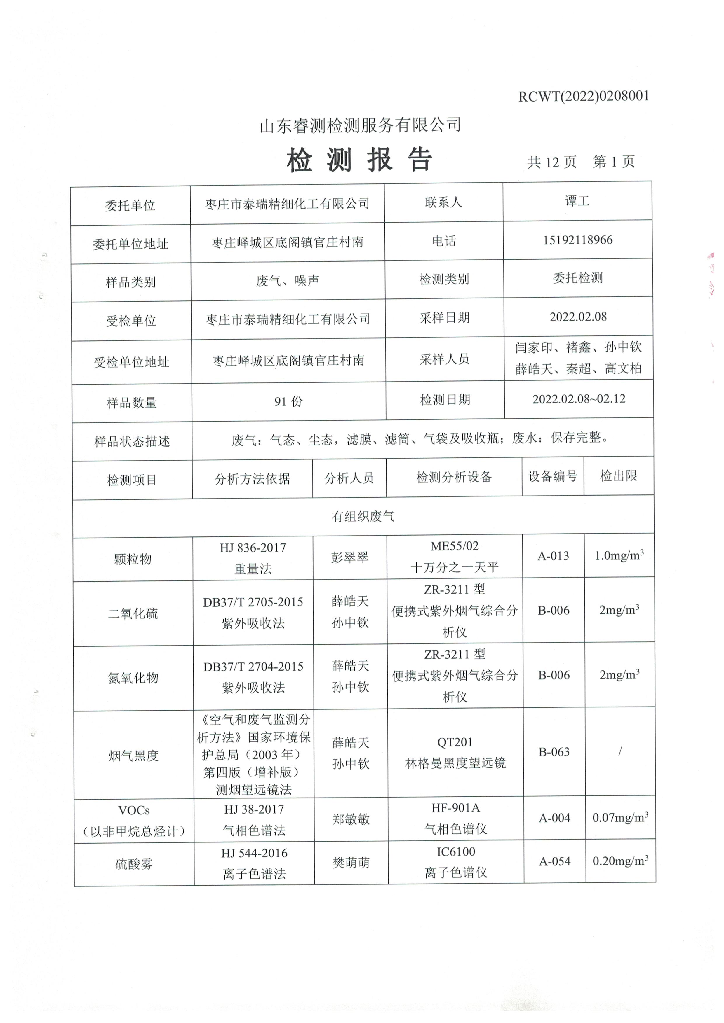 2022年2月份及第一季度自行檢測報(bào)告