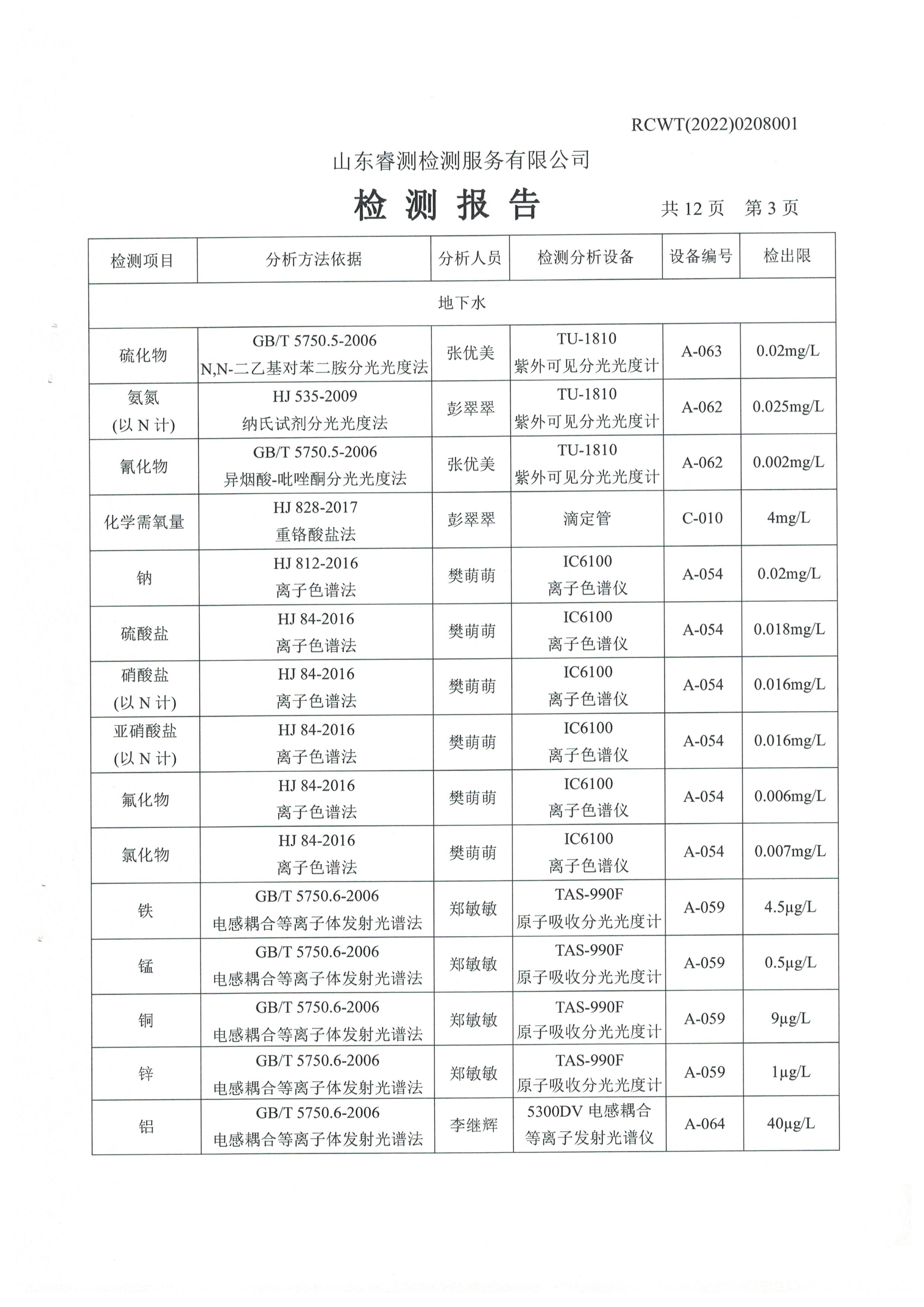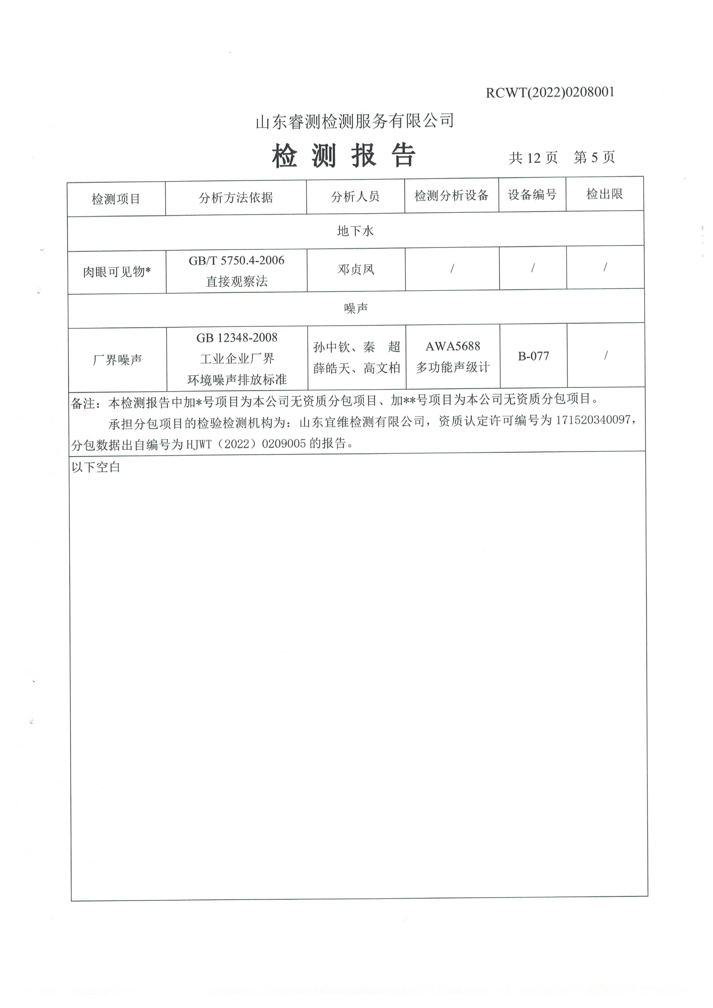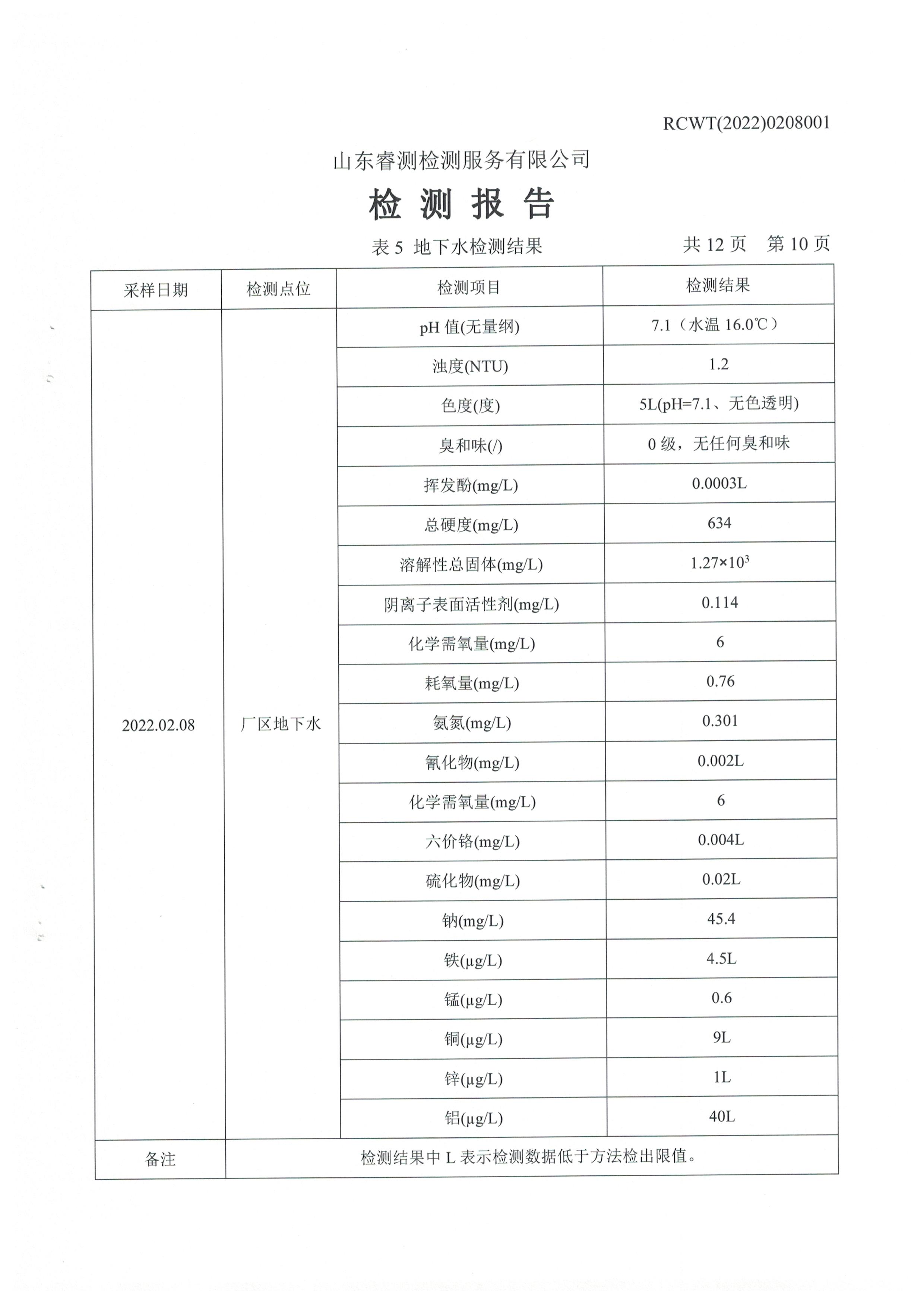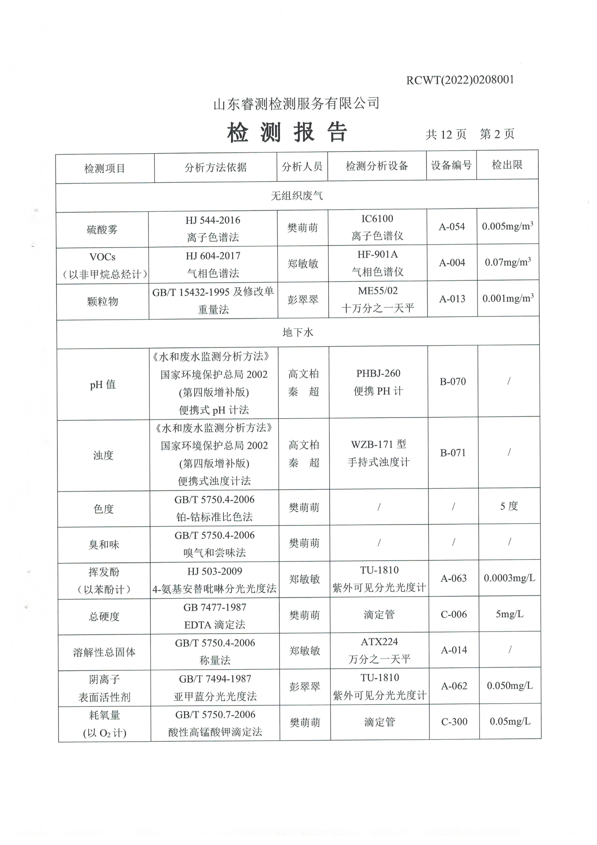 2022年2月份及第一季度自行檢測報(bào)告
