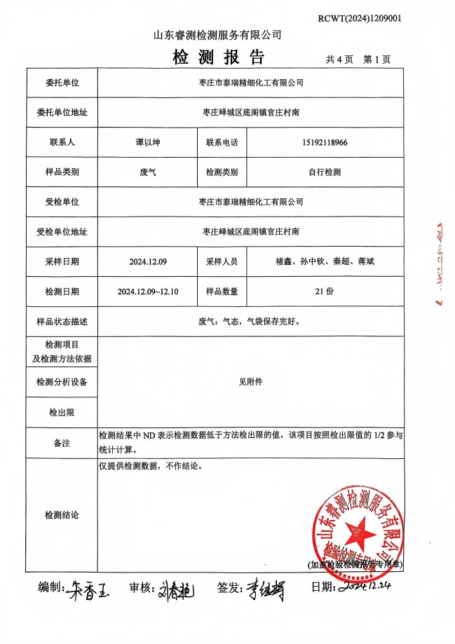 2024年12月廢氣檢測(cè)報(bào)告