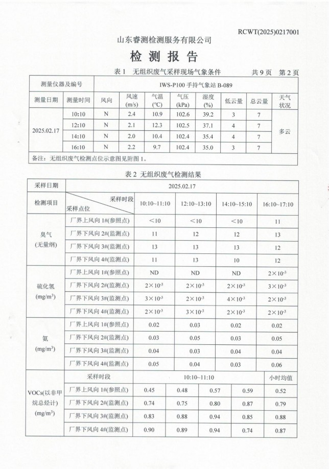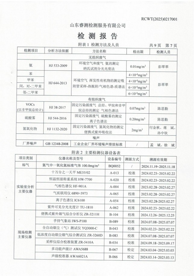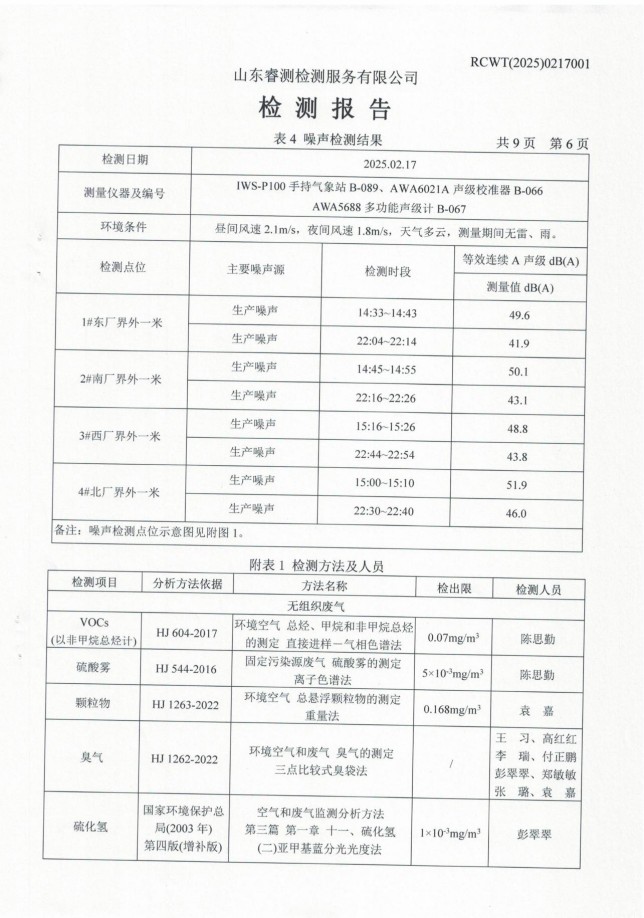 2025年第一季度廢氣、噪聲檢測(cè)報(bào)告