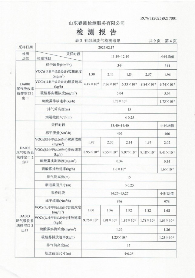 2025年1月廢氣檢測(cè)報(bào)告