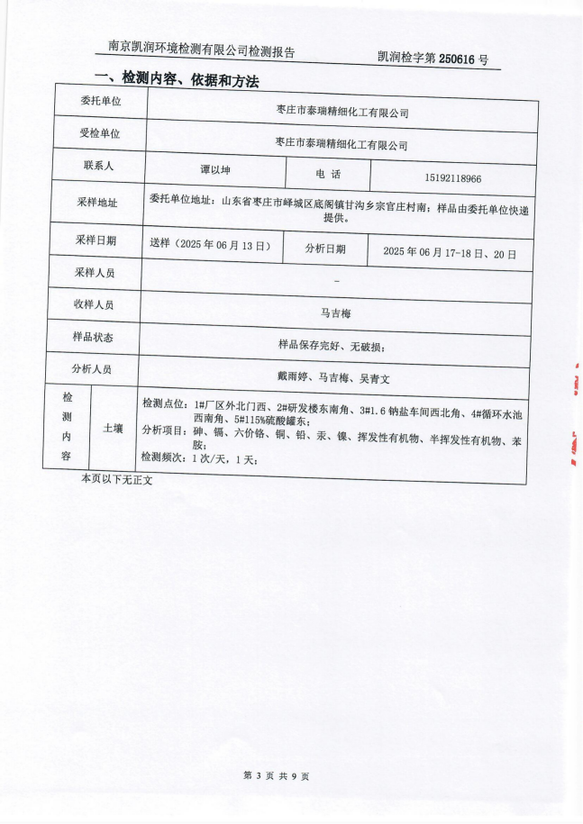 2025年泰瑞精細(xì)化工有限公司土壤檢測報告
