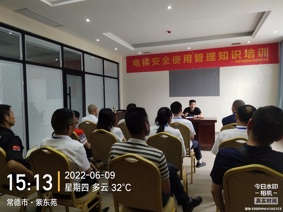 2022年6月9日下午三點(diǎn),公司組織各項(xiàng)目負(fù)責(zé)人及項(xiàng)目相關(guān)技術(shù)人員在紫東苑小區(qū)參加電梯安全使用管理知識(shí)培訓(xùn)。